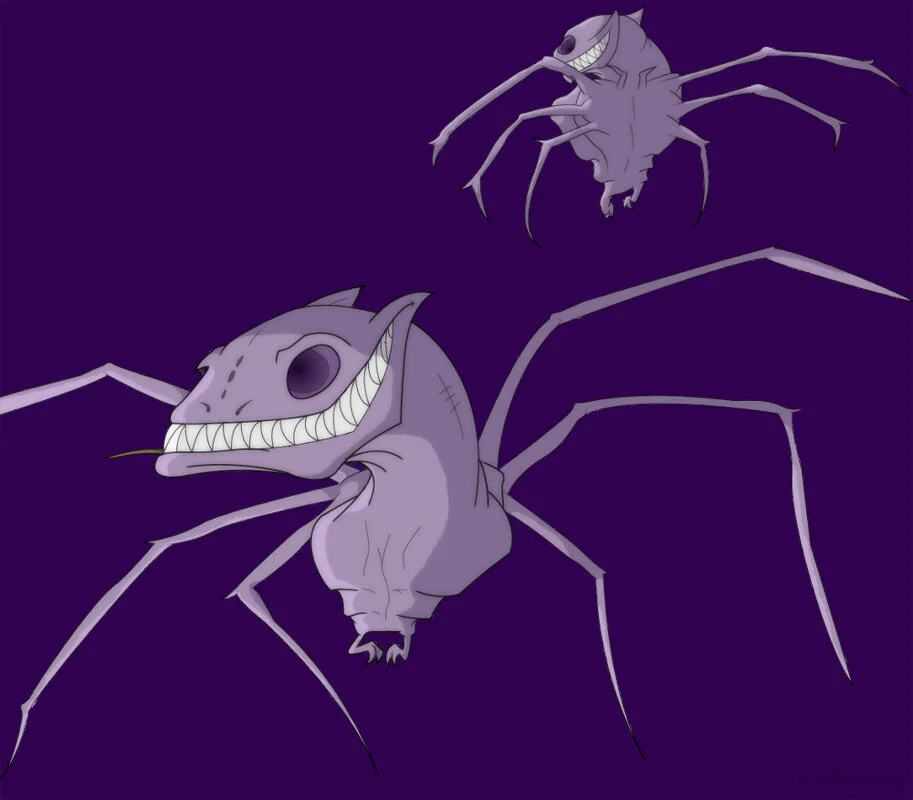 "Toothpick." Despite his uneasy appearances, he's actually a friendly potion salesman. Uses his spider-like legs to scale his giant vertical shelving units.