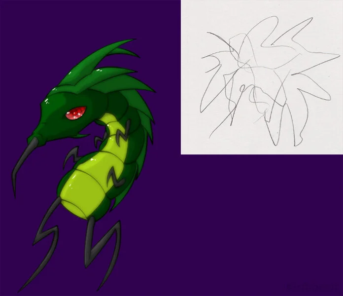 "Scythe Arms." Not my best character design, but I've always liked the simple scale pattern I drew on its body.