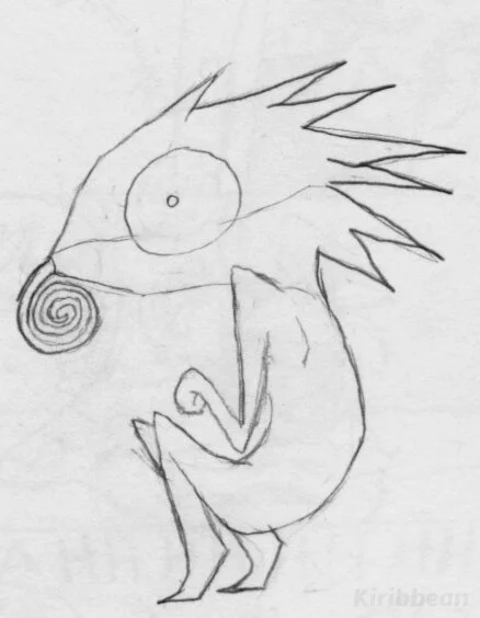 "Twitchy." Demon that eats dreams through peoples' ears using its curly proboscis.